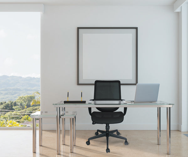 asiento: en malla de diseño ergonómico.
